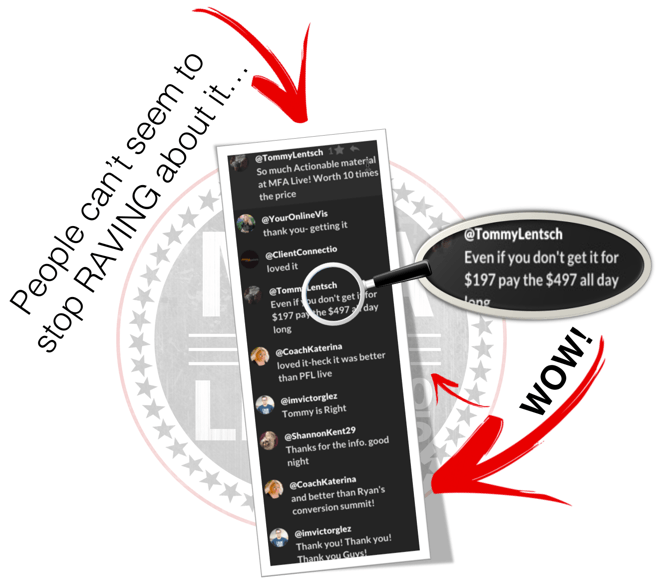 I paid for all 10 members of the MFA team, and the entire Mentor To A Million Faculty, to be on-hand...